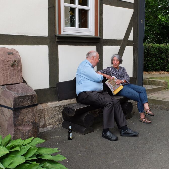 Frau Heinemann, die Sekretärin für Kirchengemeinde und Friedhof,